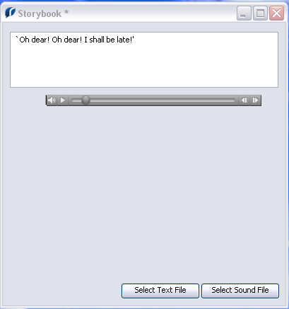 Now we need the sound file we want to play and the text we want to display. I have a sound file of the first chapter of Alice in Wonderland being read aloud and the text of the first chapter stored in a text file. I have split the text file up into individual lines as we only want to show one line at a time.