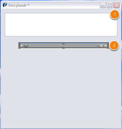 For a simple talking story book first we need is a new stack with a field called "words" to display our text (1) and a player called "story" (2) to play our sound file.