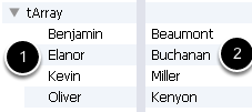 We can view the contents of our array in the variable watcher with the keys on the left (1) and values on the right (2)