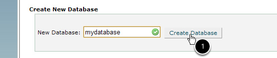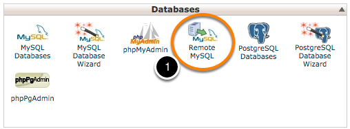 Once logged into cPanel it is possible to create a MySQL database. Scroll down to the Databases panel and select MySQL Databases (1) as shown above.