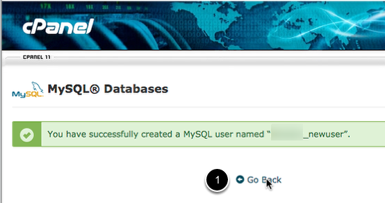 Once the users has been created, select Go Back (1). This opens a new screen from where the user can be assigned to the database that was created earlier.