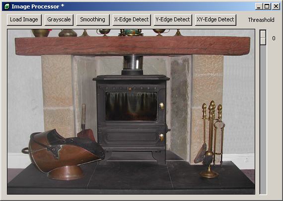 Your application may look something like the one shown in this example. After selecting the Load Image button you should get a file selection dialog that allows you to select an image from your file system. The image is then displayed in the Image Area.