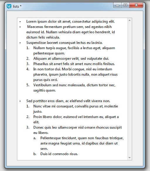 LiveCode has support for hierarchical lists in fields. These are controlled with the listStyle, listDepth and listIndent paragraph-level properties.