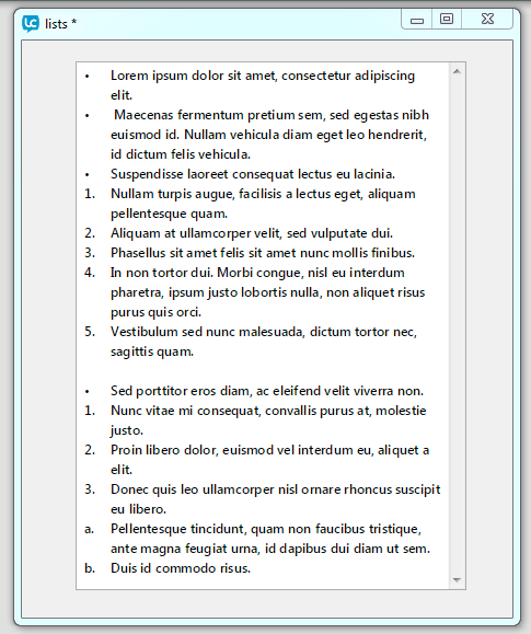 set the listStyle of line 14 to 17 of field "list" to "lower latin"