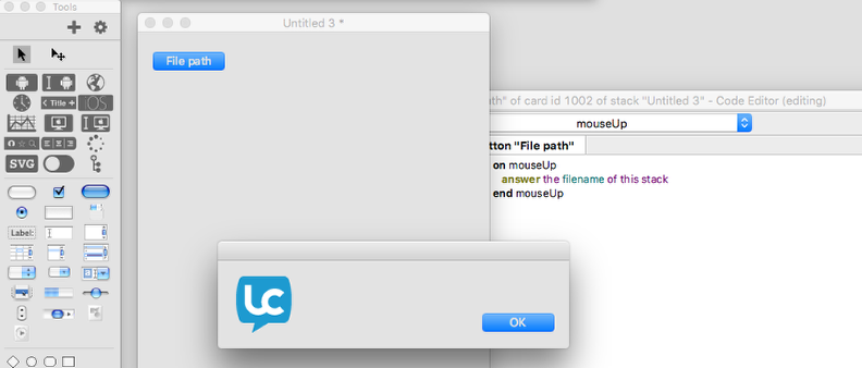 I built this stack into a Mac standalone (File -> Save as Standalone Application...). When I click the "File Path" button, I get the path as shown above.