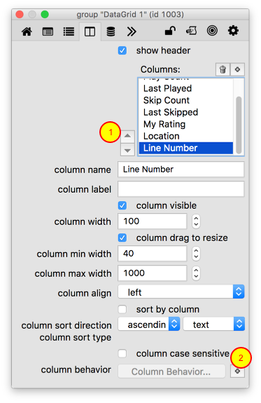 Now all that is left is to define the behavior for this column. Back in the Columns pane click the Column Behavior button (1) to open the script editor.